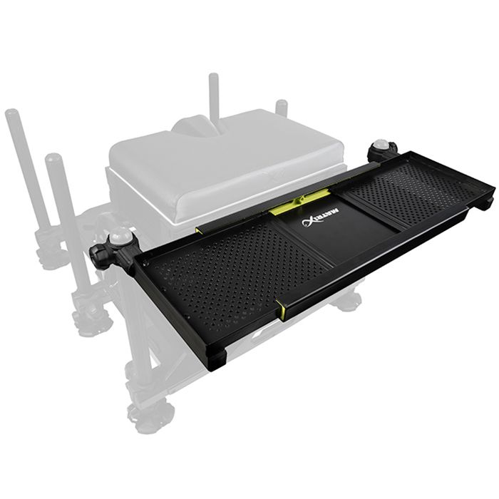 Le plateau latéral extensible mince Matrix est conçu pour s'adapter à l'arrière d'un panier-siège. Il est idéal comme plateau supplémentaire pour les articles de pêche tels que les bas de ligne et les boîtes de rangement de feeder, tout en permettant de garder du matériel supplémentaire à portée de main lorsque vous êtes assis dans l'eau !