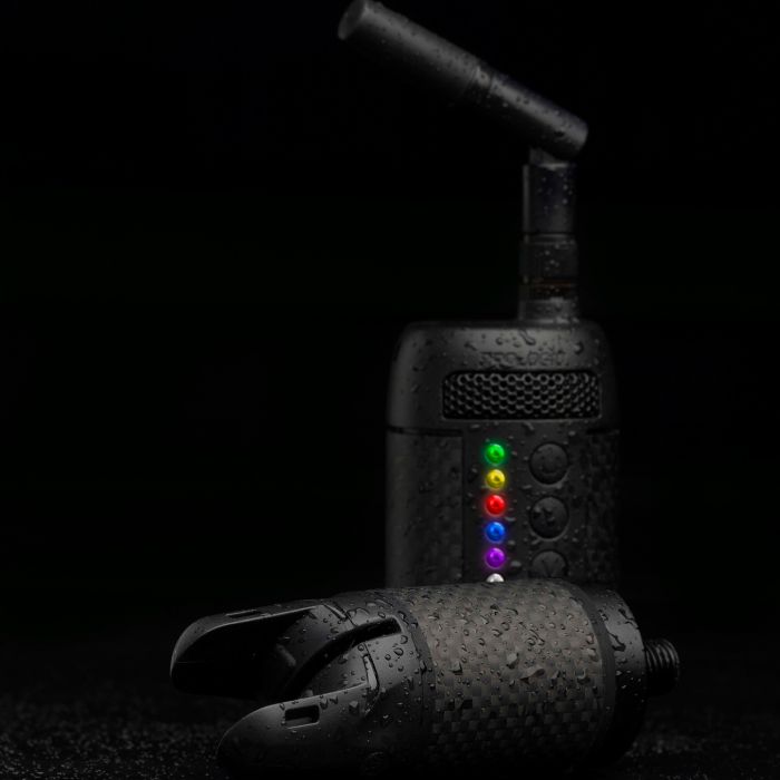 Du côté de la centrale, vous avez la même portée de 150m offerte par les détecteurs, avec cinq chaînes de réception et dotée aussi de quatre niveaux de volume et cinq niveaux de ton. Une antenne amovible et pliable facilite le rangement et le transport, et est adaptée au corps en carbone 3K, qui fournit une résilience et une durabilité que les pêcheurs actifs recherchent toujours dans leur matériel.