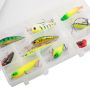The Discover Predator lure pack is an easy, convenient, and affordable way to start fishing for pike and predatory fish with lures. Fishing with lures offers an exciting opportunity to target fish using this fun and energetic style of fishing, where staying mobile and casting in likely looking places will provide the best action and results. Choosing the right lure for the day can be a tricky task so we have selected the best patterns and colours to make the selection easier for the angler, we have packed the lures into a transparent lure box for safe and easy transport and storage and provided a trace, so you have all the required items to start fishing. The Discover Lure set small offers 10 smaller size lures with that will entice even the smartest predator to attack them. All the Discover lures will swim at various depths and a surface lure is also included to cover all scenarios from deep water to surface fishing. All the Discover lures are finished with high quality holographic paints and transfers and are fitted with ultra sharp treble hooks to ensure good hook holds; a free wire trace is also included to ensure any large predators with teeth wont bite through the line.
