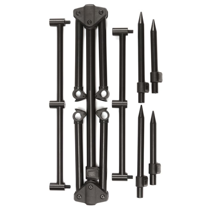 This 3 rod pod is based around a goal post style buzz bars which allows you to use it both as a carp rod pod or with banksticks depending on the venue whether it be on wood platforms and hard ground to venues where you need to wade out in the water or with soft ground. For easy storage, this fishing rod pod is supplied in a fold out padded storage roll that allows you to keep your fishing bite alarms and butt grips attached to your buzz bars.