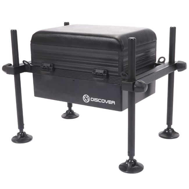 This seatbox has been constructed using an aluminium frame which makes the seat box incredibly lightweight but also incredibly strong and robust. The frame of the Discover Seat Box features 25mm round legs and is compatible with a wide range of seat box accessories on the market. The legs of this seat box feature large swivelling mud feet to give stability even in wet and muddy conditions.