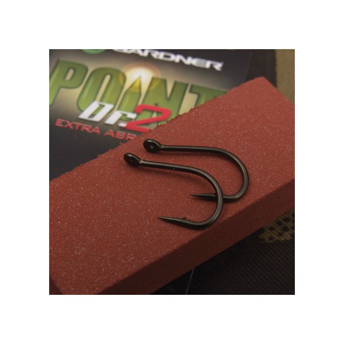 Les Docteurs de Pointe Gardner sont des aiguiseurs d’hameçons simples à utiliser qui sont parfaits pour maintenir vos pointes d’hameçons tranchantes, l’avantage ultime ! Ceci est parce qu’une pointe plus tranchante va s’accrocher et pénétrer plus rapidement et plus profondément et cela entraîne automatiquement plus de prises ! Depuis l’introduction du Docteur de Pointe original facile à utiliser et très populaire, nous développons un deuxième bloc. Un qui a une texture un peu plus ferme qui contient aussi un degré plus élevé de matière abrasive. Tout comme l’original nous voulions que les nouveaux blocs soient plus faciles à utiliser que des pierres et limes traditionnelles. Le composé caoutchouc abrasif unique du Docteur de Pointe 2 est toujours assez pardonnant afin que vous puissiez facilement éviter d’appliquer trop de pression à la pointe et ruiner l’hameçon, mais la texture plus ferme et l’abrasion plus élevée le rend plus rapide à utiliser et mieux pour enlever un peu plus de matière de l’hameçon.