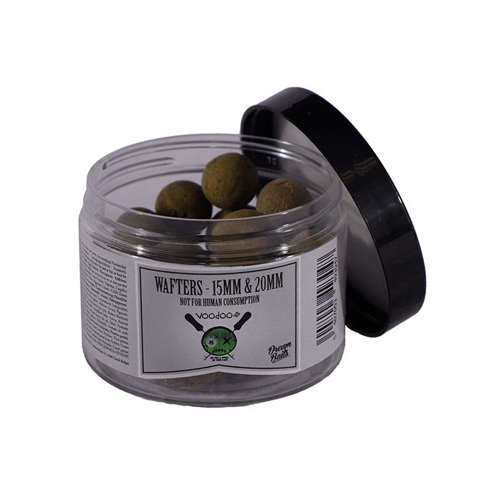 Les pop-ups verts de Voodoo+ sont disponibles en 12 et 15 mm dans un emballage scellable. Voodoo est un appât alternatif à faible acidité et au goût de baies. Les pop-ups sont dotés d'attracteurs liquides supplémentaires qui les rendent extrêmement attractifs. Les pop-ups sont à l'épreuve des corps étrangers et ont une flottabilité minimale de 48 heures... Également disponible en pâte, bouillettes, ready mades, wafters, appâts, method mix et stickmix, dips, mini bouillettes, saveurs. Disponible également en version bleue.