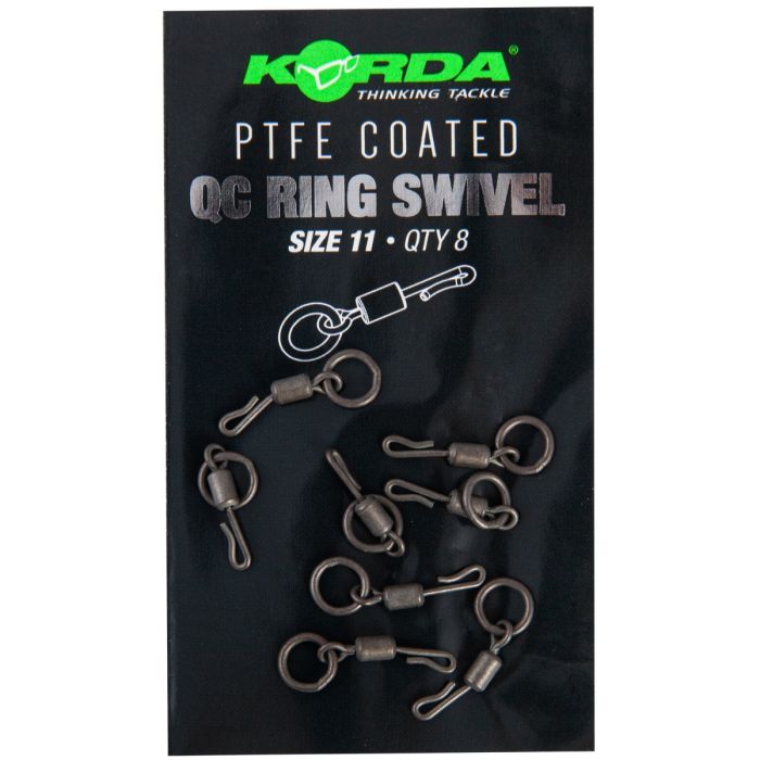 Les ÉMERILLONS ANNEAU QC REVÊTU PTFE taille 8 et 11 ont été conçus pour permettre aux pêcheurs de rapidement changer de bas de ligne tout en maintenant une connexion puissante et fiable. L’élément QC, ou Quick Change, est devenu un préféré avec l’Équipe Korda et permet au montage d’être changé et relancé en un minimum de temps pour profiter des poissons qui se nourrissent dans votre zone. INDICE: Couvrez la connexion avec une gaine anti-emmêlements. Le revêtement PTFE est un polymère synthétique qui a un des coefficients de friction les plus faibles de tout solide. Cela en fait le revêtement parfait pour nos émerillons car il réduit la friction entre le tonneau et l’œillet de l’émerillon, les permettant de tourner de manière libre ce qui réduit les emmêlements. Ces ÉMERILLONS ANNEAU QC REVÊTU PTFE seront ajoutés à notre gamme et ne remplaceront pas les ÉMERILLONS ANNEAU QC existants.