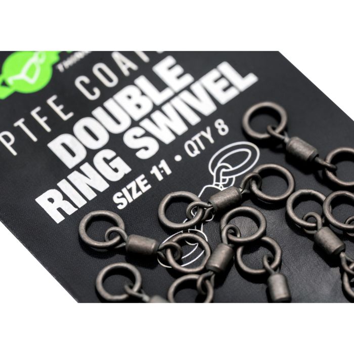 L’ÉMERILLON DOUBLE ANNEAU REVÊTU PTFE taille 11 de Korda a été conçu pour fournir un maximum de souplesse lorsque vous utilisez une mise en place hélicoptère. L’anneau supplémentaire aide à réduire les emmêlements tandis que le revêtement PTFE assure une rotation super fluide améliorée. Le revêtement PTFE est un polymère synthétique qui a un des coefficients de friction les plus faibles de tout solide. Cela en fait le revêtement parfait pour nos émerillons car il réduit la friction entre le tonneau et l’œillet de l’émerillon, les permettant de tourner de manière libre ce qui réduit les emmêlements.