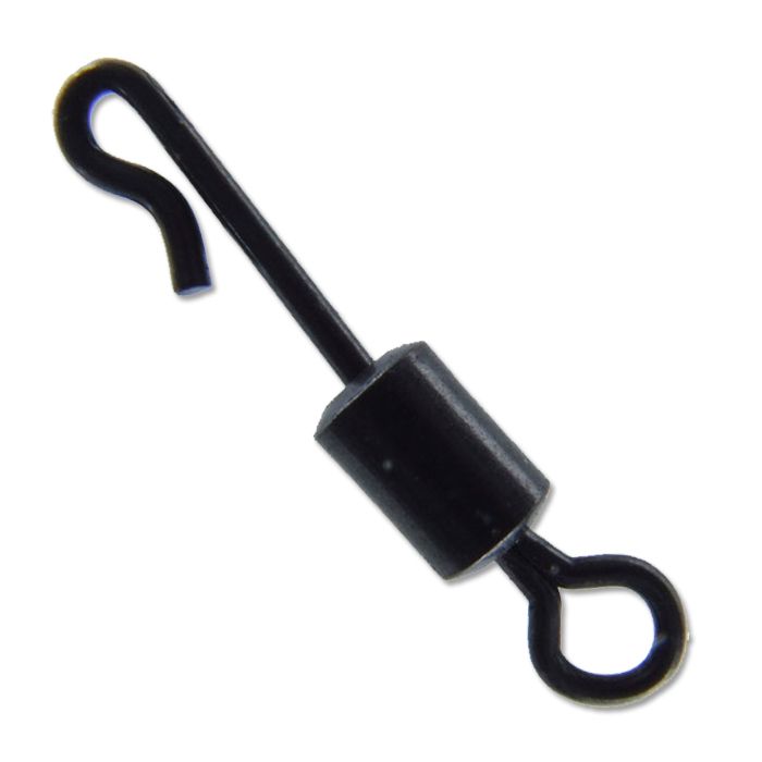 Le moyen rapide et pratique de changer debas de ligne. Idéal pour une utilisation avec tous les montages à changement rapide. - La finition noire anti-reflet réduit la visibilité sous l'eau. - Extra fort, rotation douce et totalement fiable. - L'œillet rond de l'émerillon assure une résistance maximale au nœud. - L'œillet de l'émerillon de taille 8 est parfaitement dimensionné pour s'adapter à tous les clips de plomb, garantissant que le plomb soit déchargé en toute sécurité avant que l'émerillon ne soit libéré du clip de plomb (IMPORTANT). - Le crochet à changement rapide permet d'attacher les bas de ligne sans effort, sans avoir à faire de nœuds compliqués. - Pour maintenir les bas de ligne en position et éviter les enchevêtrements, nous recommandons d'utiliser les manchons anti-enchevêtrement comme illustré. - Testés par lots pour plus de fiabilité. - 10 émerillons par paquet. Astuce : Utilisez un caoutchouc de queue coupé et glissez-le sur le crochet pour plus de sécurité et pour éviter les enchevêtrements.
