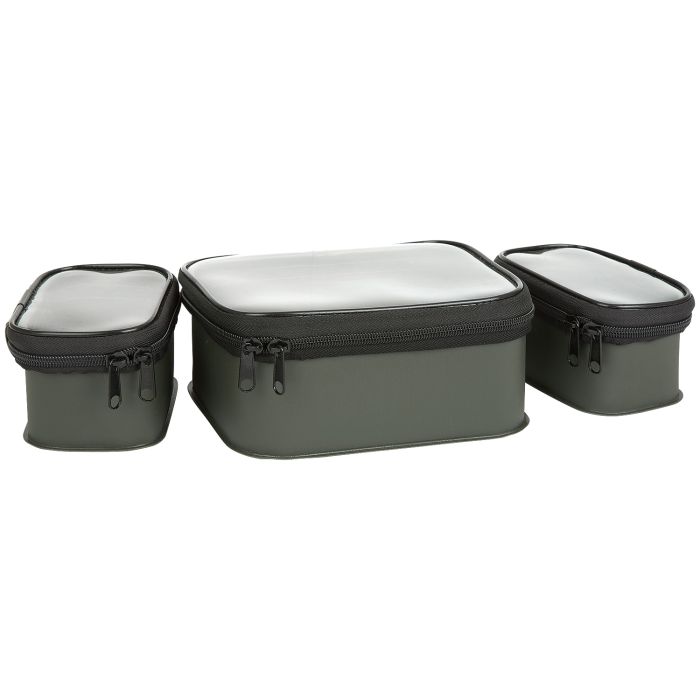 • Trois pochettes EVA avec des couvercles zippés transparents