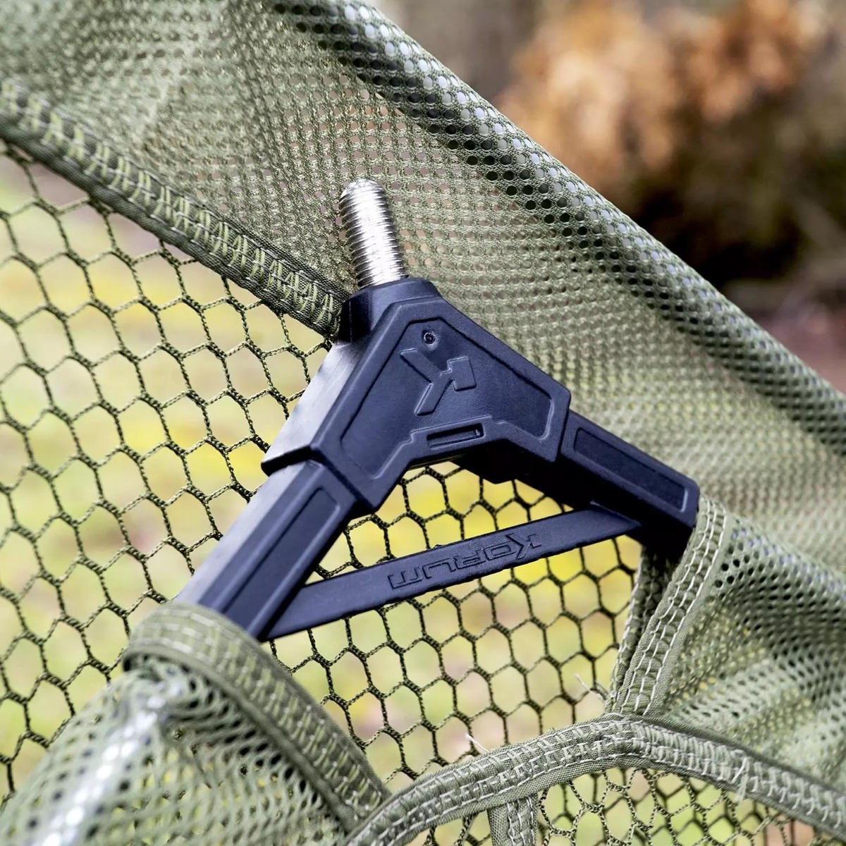 En règle générale, les profils d'épuisettes sont arrondis, triangulaires ou en cuillère, mais Korum a réinventé la forme et a choisi d’introduire sur le marché une épuisette de forme carrée. Les recherches de la marque suggèrent qu’une forme carrée à bords biseauté offre un logement sûr à court terme pour les spécimens de poisson pendant cette courte période lorsque vous installez votre tapis et préparez votre équipement photographique afin de documenter vos prises.