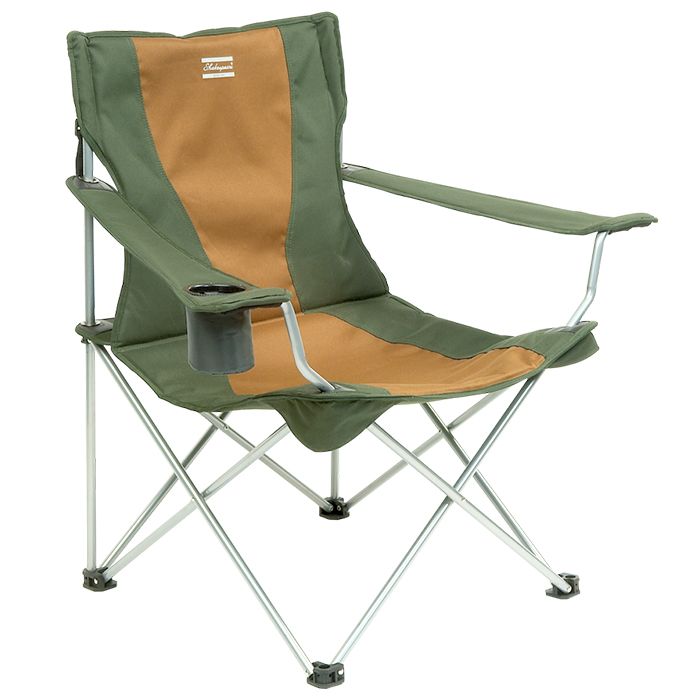 Caractéristiques améliorées - Un fauteuil qui convient à de nombreuses utilisations en extérieur. Vert et brun en polyester 600D. Réalisé avec des tubes d'aluminium 16 mm, siège et accoudoirs en polyester 600D. Un modèle très compact multi-usages.