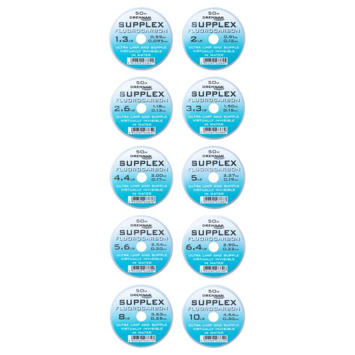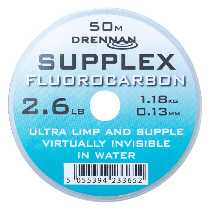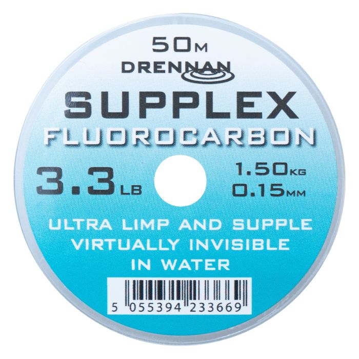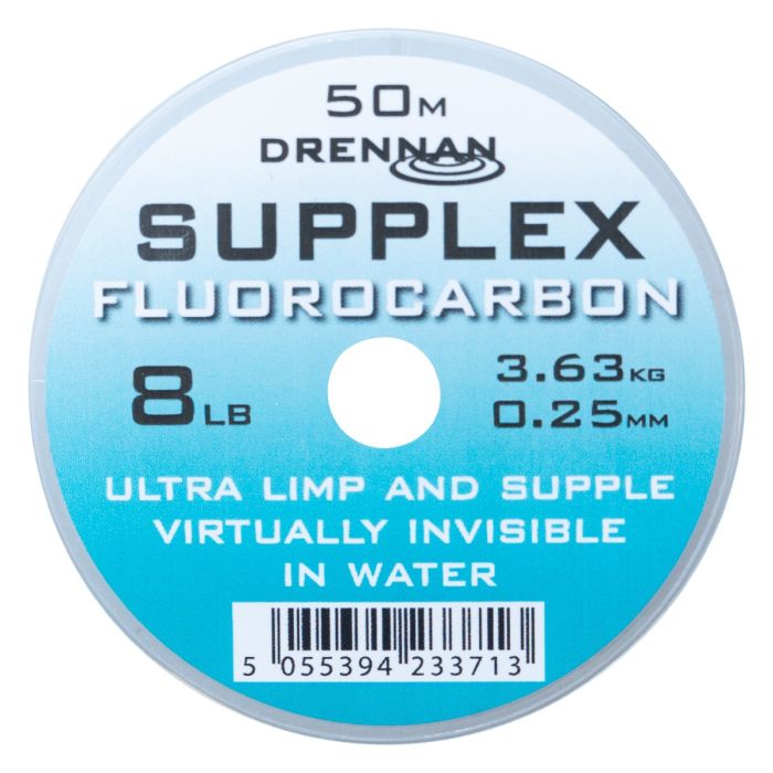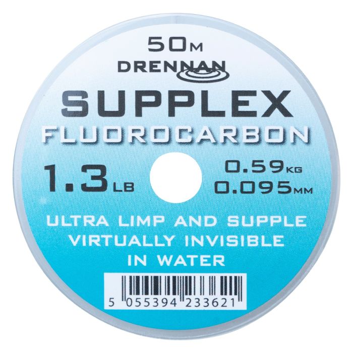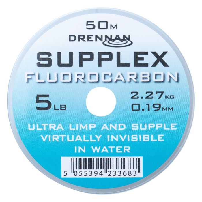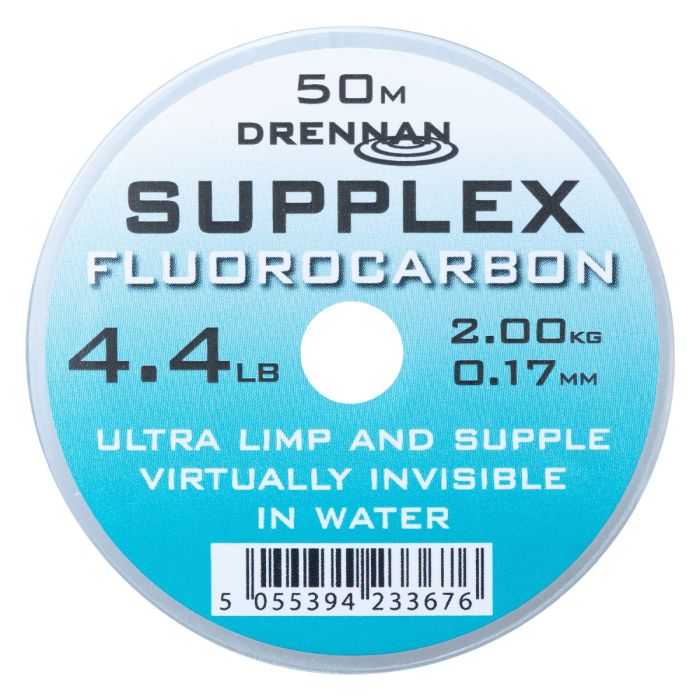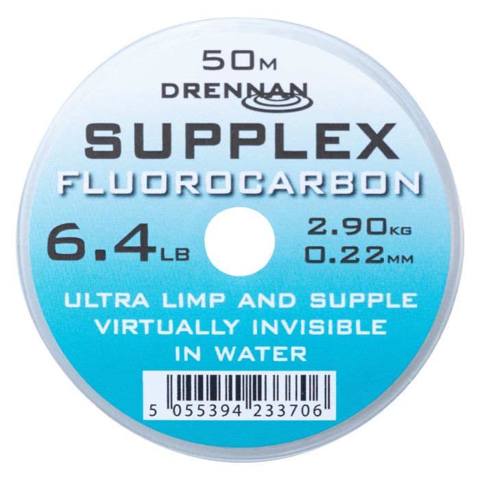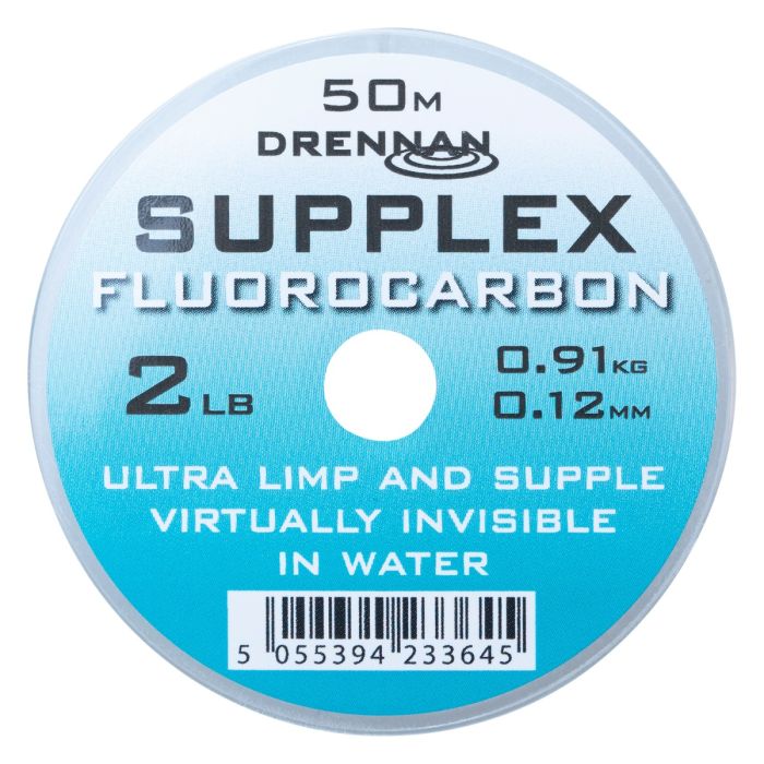 Supplex Fluorocarbon est disponible en pas moins de 12 diamètres et résistances précis, de 0.075mm (0.9lb) jusqu’à 0.30mm (10lb). Parce qu’il est fabriqué à partir de 100% fluorocarbone, il est exceptionnellement résistant à l’abrasion, coule bien, et ne se dégrade pas dans la lumière du soleil comme un mono standard. Il a aussi un indice de réfraction très similaire à celui de l’eau, ce qui le rend pratiquement invisible dans l’eau transparente. Le fluorocarbone est aussi moins susceptible de se retourner sur la récupération comparé à un mono standard, ce qui en fait un choix génial pour les fois où vous lancez et récupérez souvent.