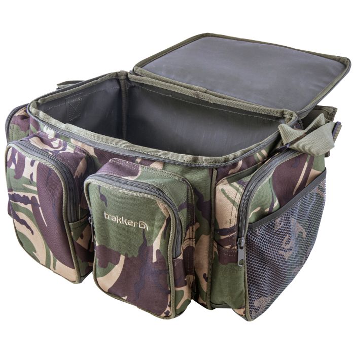 Parfait pour stockage et transport, le Fourre-Tout Compact Trakkers DPM est doté d’un couvercle renforcé, ce qui vous permet de vous en servir comme table de biwy fonctionnelle et durable, tandis que deux poches externes complimentent le compartiment principal pour vous offrir plein d’espace pour tous vos essentiels de pêche nocturne. Ce fourre-tout populaire est maintenant disponible en imprimé stylé Trakkers DPM, si vous êtes fan du look camouflé quand vous êtes sur la rive. Une base étanche ultra pratique garde tout votre matériel au sec, même quand la rive est trempée de pluie. Fabriqué en polyester 600D durable, avec une sangle d’épaule rembourrée pour un confort optimal lors du transport, ce fourre-tout Trakker est ideal pour une session de 24h, avec des dimensions de 48cm x 38cm x 25cm.