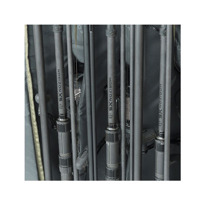 Placez vos cannes dans le fourreau avec les guides orientés vers le bas et les pointes reposant dans les capuchons rembourrés, bien fixées à l’aide de bandes Velcro. Une grande poche extérieure vous offre un espace de rangement pratique pour votre épuisette, tandis que des poignées renforcées en EVA facilitent le chargement, le déchargement et le transport de vos bagages par tous les temps. Toutes les cannes stockées à l'intérieur sont protégées par des séparateurs rembourrés, tandis qu'une bandoulière rembourrée réversible fait de ce fourreau un choix idéal. Trois poches pour accessoires externes offrent également un espace de rangement pratique pour vos biens essentiels sur la berge, y compris les flotteurs Spod et marqueur.