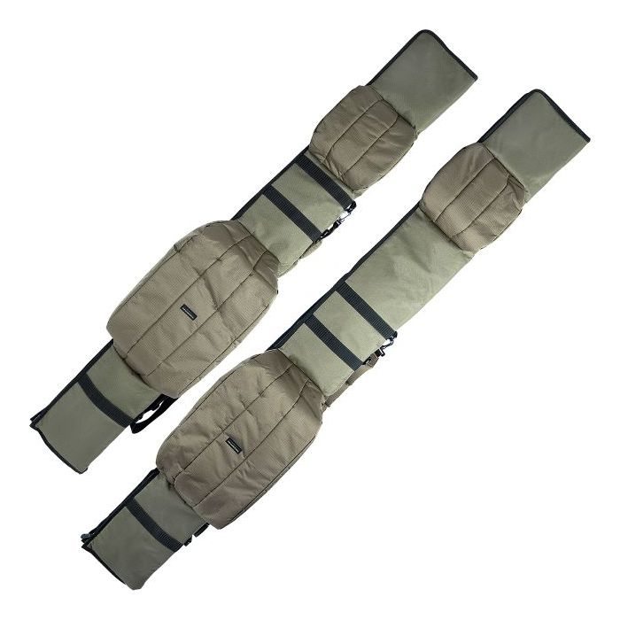 Ces fourreaux à cannes fournissent assez de protection pour des cannes et moulinets montés. Il y a une zone très rembourrée pour trois mises en places à l’intérieur, en plus d’une grande poche externe pour votre épuisette et manche. La bandoulière rembourrée est réglable, et la poignée de transport rend la vie facile à la rive. Une protection améliorée offerte pour les guides de cannes grâce à la section bosse sur le haut du fourreau - un moyen génial et simple de transporter votre matériel.