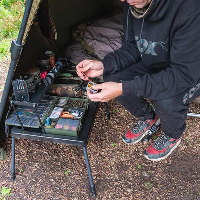 Angling isn't just about casting and reeling. It's also about ensuring you have the right setup to keep your essentials organised. Every angler knows the struggle of keeping their gear tidy, especially on those longer sessions by the water. The Fox 2 Tier Bivvy Table is tailored to cater to this need, offering a functional and well-thought-out design to help both new and seasoned anglers maintain an orderly workspace.
