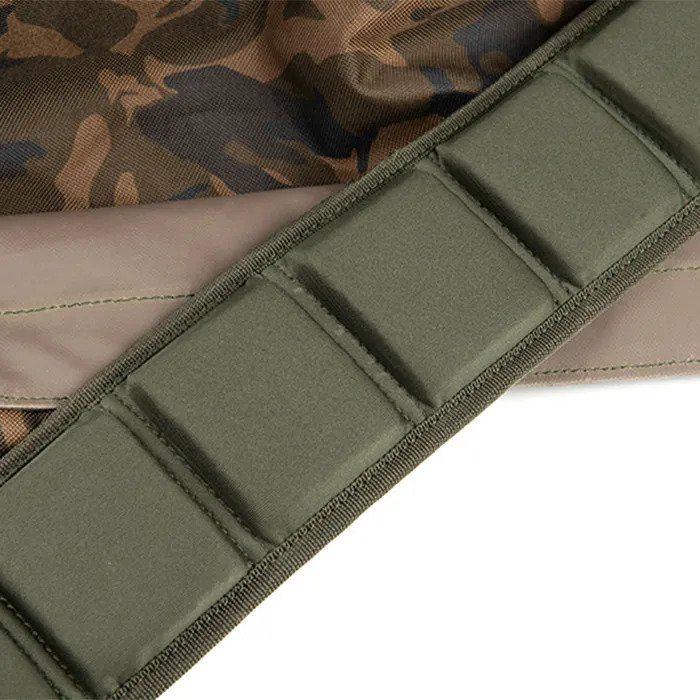 Fox Camolite Large Fishing Bed Bag, The Fox Camolite Large Fishing Bed Bag is the perfect way to keep your bedding and fishing gear organised and protected. Made from 100% treated 500 denier polyester, it features a unique Fox Camo Pattern that is perfect for blending in with your surroundings. The double heavy duty zips make it easy to access your gear, and the padded removable shoulder strap and stiffened EVA Grab handles make it easy to carry. The main outer fabric is 100% Polyester, making it durable and long lasting. The padding/filling is made from 100% Polyethylene, which is soft and comfortable, while the lining is made from 100% Polyester, which is breathable and helps to keep your gear dry.