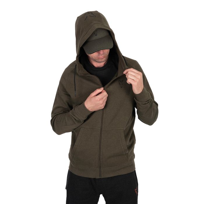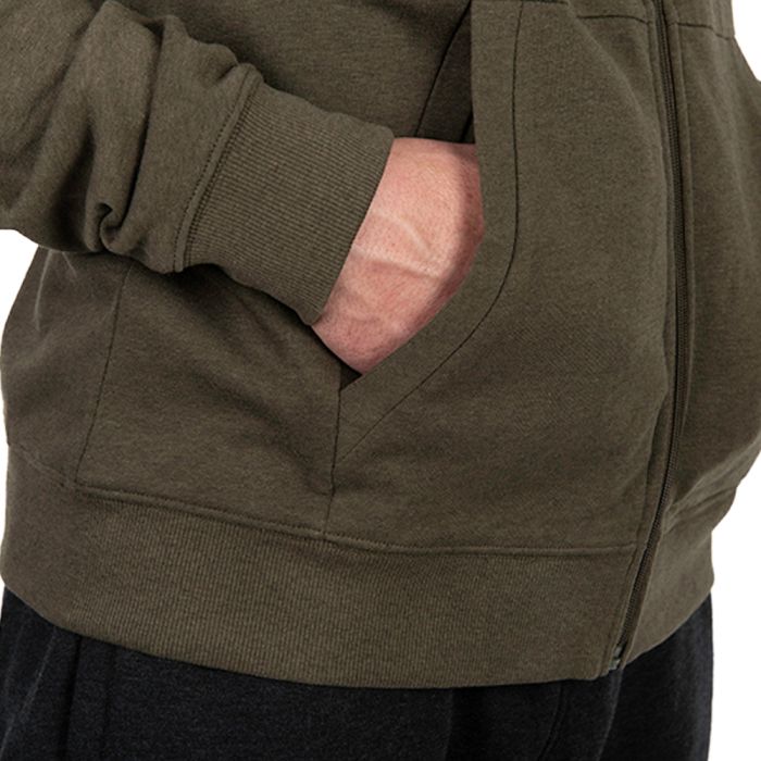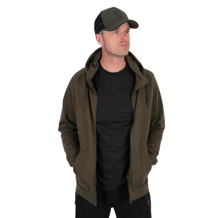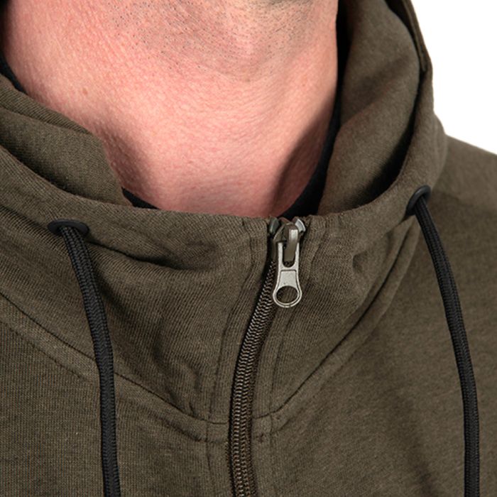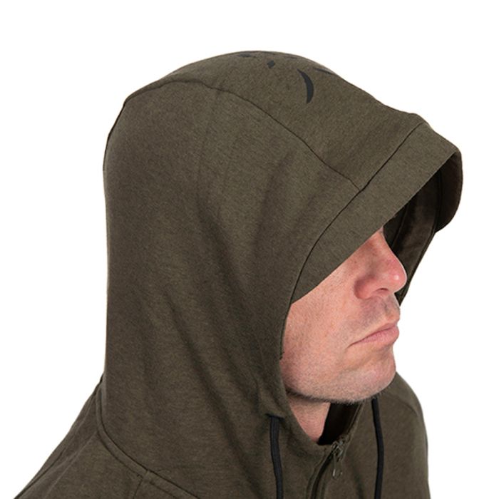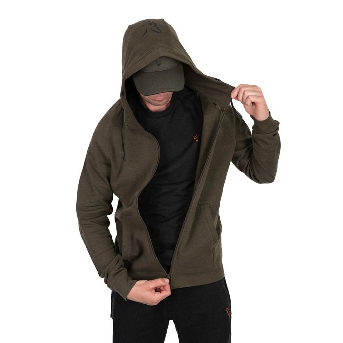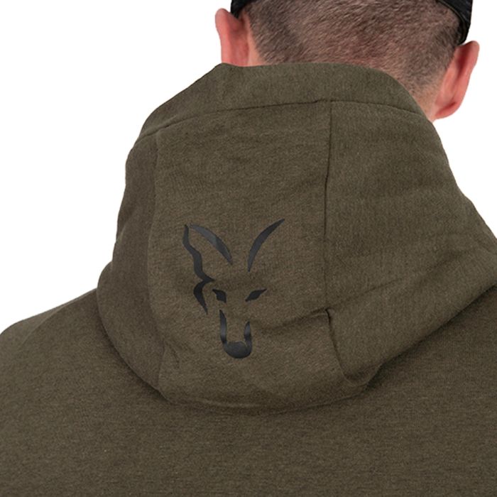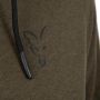 Le sweat à capuche léger en vert chiné est doté d'un logo Fox noir imprimé. Il dispose d'une poche kangourou avec une poche de sécurité interne dissimulée à bouton-pression. Les cordons de serrage sont munis d'embouts en silicone. La capuche est composée de 3 panneaux. Les poignets sont côtelés et l'ourlet de taille est élastiqué. Le sweat est fabriqué à partir de 85% de coton et 15% de viscose, avec un poids de 240gsm.