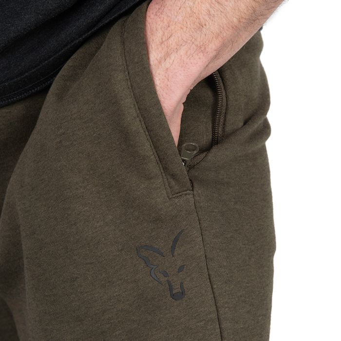 Le Jogger léger vert chiné est doté d'un logo Fox noir imprimé. La ceinture interne élastique présente un motif du logo répété en jacquard. Les cordons de serrage sont munis d'embouts en silicone. Les poches avant sont zippées, les poignets chevilles sont côtelés. Une poche arrière se ferme avec une bande auto-agrippante.