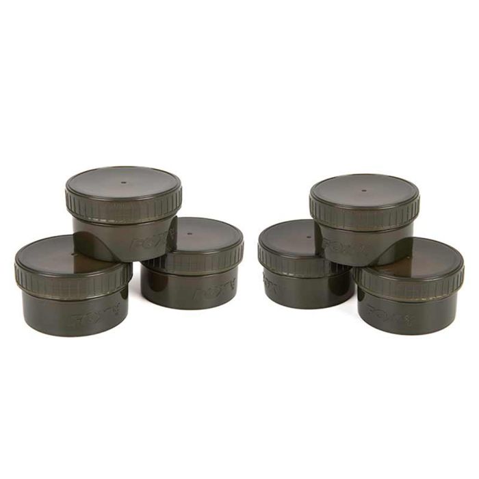 Fox Edges Hookbait Pots, Designed for secure storage of all hook baits. Perfect for storing glugged and soaked pop-ups, bottom baits, plastic baits or wet particle hook baits to be stored without risk of spillage.