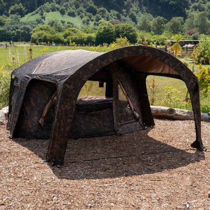 Fox Frontier Camo Deluxe Extensions, just what you need to increase the available space inside your Frontier shelter. Manufactured from the same tough VenTec 20,000mm HH fabric and with a lightweight aluminium frame. Supplied with a heavy duty groundsheet as well as mozzi side and front replacement panels. The front panel has two door options, a clear PVC and a solid option that can be completely removed or replaced with the front mozzy panel.