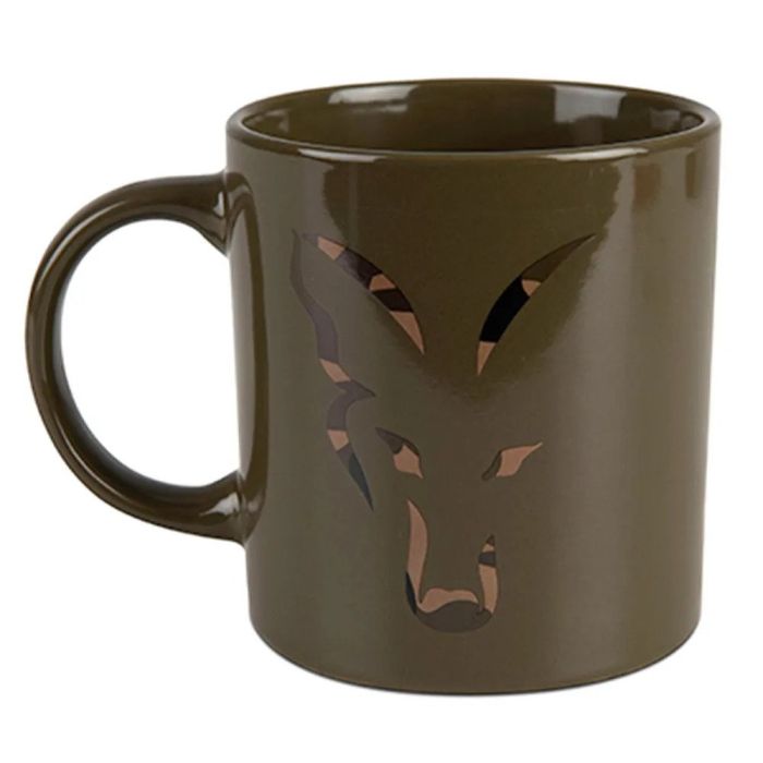 Fox Green & Camo Head Ceramic Mug, Introducing the Fox Green & Camo Head Ceramic Mug, the perfect companion for hot drinks on the bank. This mug boasts a 350ml capacity and is uniquely eye-catching with its signature green and camo colour combinationthe standout being the detailed embroidered Fox logo on one side and stock pattern jumpman logo on the other. Boasting superior quality craftsmanship, it is an essential piece of kit in any anglers collection. With so much attention to detail going into its production, you can be certain that this mug will be your number one choice for hot beverages when out fishing all season long!