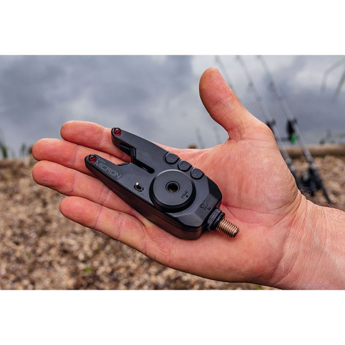 Le Fox Mini Micron fonctionne avec des petites piles de type N/ LR1 et Fox suggère que pour une meilleure indication de la touche, il faut toujours l'utiliser en conjonction avec une bobine, un crochet ou un Swinger (pour la gamme Fox).