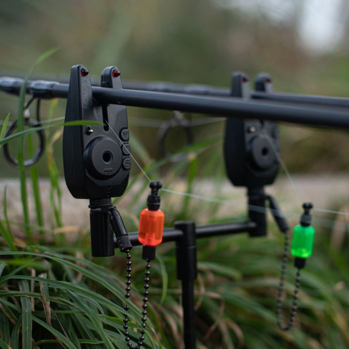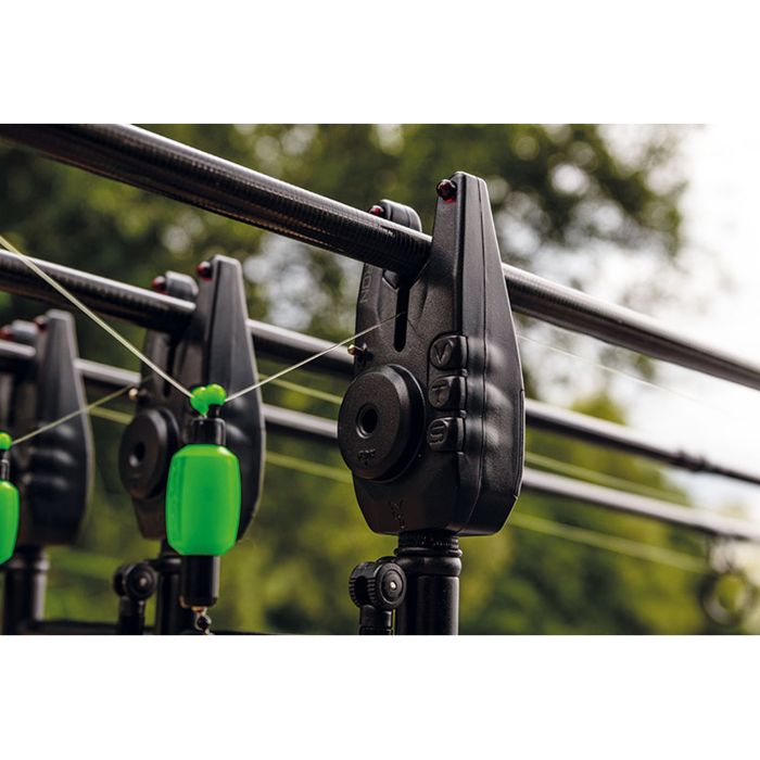 Le bouton de contrôle de la sensibilité offre deux réglages différents, idéaux pour la pêche dans des conditions venteuses et le différentiel de chute. Les deux LED haute visibilité de 5 mm sont placées en haut des oreilles pour être toujours visibles. L'intensité des LED est également réglable en maintenant le bouton de volume enfoncé et en appuyant sur le bouton de tonalité.