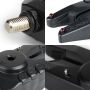 La technologie D-Tec Sensing System/Roller Wheel permet une détection claire et cohérente des touches. Les incrustations en caoutchouc qui protègent votre canne à pêche et la maintiennent en place en cas de touche sauvage pour éviter de perdre votre canne à pêche, l'interrupteur à bascule marche/arrêt et le collier de verrouillage moleté sont des caractéristiques supplémentaires de l'alarme.