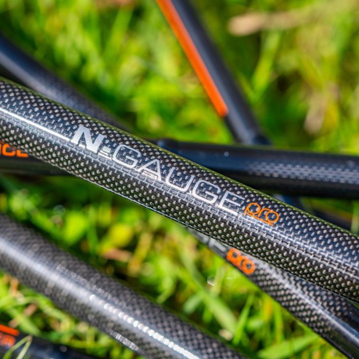 La canne la plus courte de la gamme N-Gauge Pro est la 9’ Feeder. Cette canne a été conçue principalement pour les pêches courtes au feeder et au plomb. Elle est parfaite pour pêcher en « snake lake » ou bien en bordure pour une grande variété de poissons. Elle est idéale pour les f1 et les plaquettes mais aussi les grosses carpes. La N-Gauge Pro 9’ Feeder possède une action progressive douce, tout en offrant une puissance surprenante pour contrôler et épuiseter les carpes ! La 9’ Feeder est construite en deux brins afin d’offrir un transport facile et est livrée avec 3 scions en carbone N-Gauge Pro LT adaptés à la canne, 0.5oz, 0.75oz et 1oz. Les scions N-Gauge Pro LT Quivertips possèdent exactement les mêmes anneaux « Anti-Tangle Sea-Guide Stainless Frames » et céramiques « Slim LS Zirconia » présents sur toute la gamme de blanks carbone N-Gauge. Les scions viennent parfaitement faire corps avec la canne afin d’offrir de hautes performances au lancer et lors du travail des poissons. Il y a de nombreux scions disponibles dans la gamme N-Gauge Pro LT, 0.5oz, 0.75oz, 1oz, 1.5oz et 2oz, afin de répondre à toutes les situations. N-Gauge Pro Range Les cannes N-Gauge Pro sont l’évolution des très populaires N-Gauge, elles possèdent les dernières technologies de construction en carbone et de nombreux points importants ont été améliorés afin de répondre parfaitement au nom « Pro » ! La gamme est composée de douze cannes, un mélange de cannes Feeder, Pellet Waggler, Distance Feeder et Waggler afin de couvrir de nombreuses options de pêche. Nous avons utilisé des blanks en carbone ZERO40 Tensile sur toute la gamme N-Gauge Pro afin d’offrir la balance parfaite entre l’action lors du travail des poissons et lors des lancers afin d’obtenir des performances hors normes. Une des principales évolutions sur les cannes N-Gauge Pro sont les blanks très fins, l’utilisation de la technologie du carbone ZERO40 nous a permis de créer des blanks plus légers et plus fins, ce qui a nettement amélioré les actions progressives et les performances, tout en gardant les hautes propriétés de qualité du nom N-Gauge. Une autre caractéristique importante des cannes N-Gauge Pro est les anneaux choisis pour toute la gamme, les cannes sont pourvues d’anneaux « Anti-Tangle Stainless Sea-Guide Frames », qui permettent de réduire les emmêlages et potentielles casses au lancer. Cela est couplé avec des céramiques très fines “LS Zirconia “ qui offrent un passage dans les anneaux très doux lors des lancers et du travail des poissons mais offrent également aux anneaux un maximum de durabilité et longévité. Les touches finales incluses aux cannes N-Gauge Pro sont un porte moulinet « DPS Down Locking » avec une poignée de force en EVA. Un manche en liège de très haute qualité avec une poignée EVA gravée Guru qui permet un maximum de support lors des lancers. Ainsi qu’un tout nouveau graphisme N-Gauge Pro pour offrir une finition parfaite des cannes.