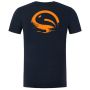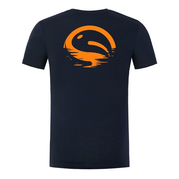 Das klassische und dezente Design des Guru Sunset Navy T-Shirts macht es äußerst vielseitig und perfekt für verschiedene Gelegenheiten. Auf dem Angeltshirt ist ein großes orangefarbenes Guru-Logo auf dem Rücken, dargestellt als untergehende Sonne, sowie ein kleines Guru-Logo auf der Vorderseite.