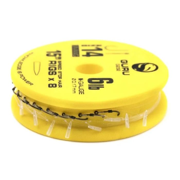 The Guru Super MWG 15 Inch Speed Stop Rigs features an optimum hair length which has been purposely developed to perfectly present most popular hookbaits. Featuring one of the most popular of Guru fishing hooks and finishing off the hair is a Speed Stop in the end which traps the hookbait on to the hair. There is also a tiny piece of 0.3mm micro silicone on the shank of the hook which is there to keep the hookbait in place and make sure the rig is working perfectly.