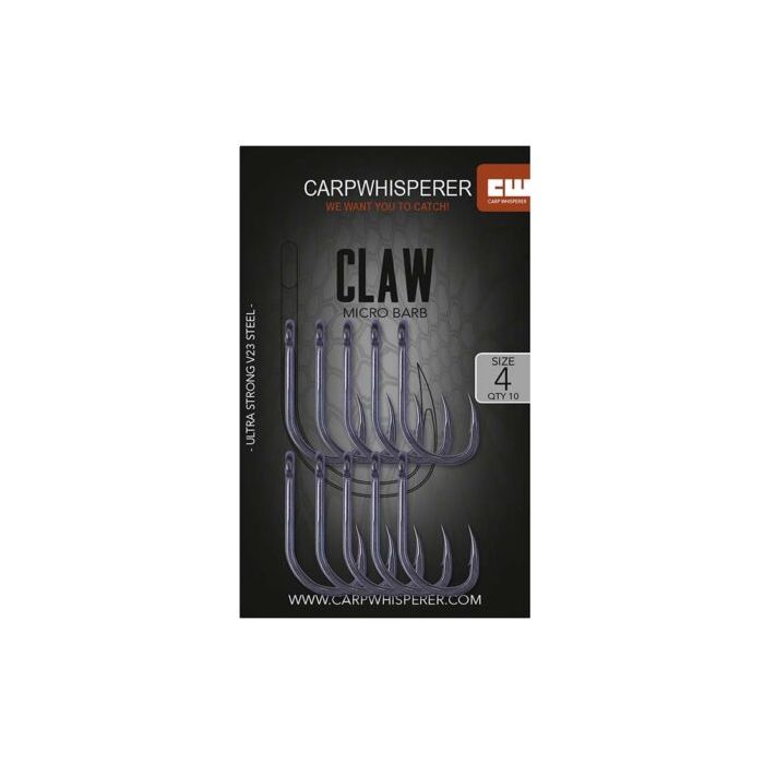 CW Claw en tailles 4, 6 et 8 est l'hameçon qui parvient à faire entrer chaque poisson en toute sécurité dans l'épuisette, même avec des mâchoires souples. Il est préférable de prolonger légèrement la tige de l'hameçon avec un morceau de Shrink Tube ou notre aligneur de ligne prêt à l'emploi. Pour la bonne offre d'appâts, nous recommandons notre Kryptec Coated Hooklink Soft comme matériau d'accroche.