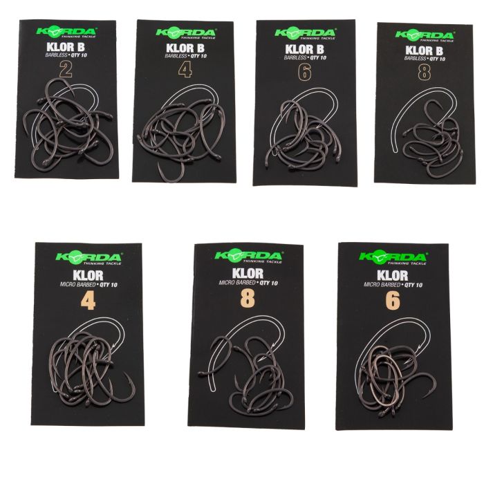 Danny Fairbrass de Korda a conçu le modèle d'hameçon Klor pour être un hameçon agressif, fort, à rotation rapide, avec un potentiel d'accrochage brillant sur une variété de montages et pour être capable de résister à des conditions extrêmes lors de la pêche de grosses carpes.