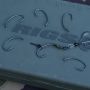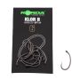 Klor a une forme agressive (encore plus que l'hameçon Kurv Shank), avec la pointe alignée avec l'œil, ce qui permet de tourner rapidement et de saisir une carpe par la bouche. Grâce à sa tige large et à son œil tourné vers l'intérieur, cet hameçon peut également être utilisé sans kicker ou tube rétractable et convient à la tresse, aux hameçons enrobés et au montage combiné.