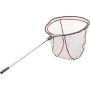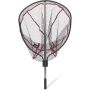 Un cadre solide en aluminium avec un filet caoutchouté et une maille de 15 x 8 mm fait partie de l'équipement du filet à poissons prédateurs en plus de la poignée en aluminium d'une longueur de 120 cm. La largeur d'ouverture de la tête est de 70 x 60 cm et la profondeur du filet de 50 cm permet de capturer les poissons en toute sécurité. La longueur totale est de 190 cm et l'épuisette peut être repliée à 120 cm pour le transport. La tête est maintenue en toute sécurité par un système classique d'épingles.