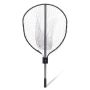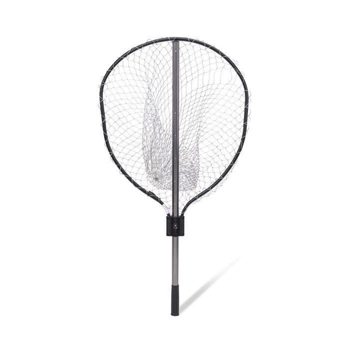 Une épuisette spéciale qui est souvent utilisée par les pêcheurs à la traîne. L'épuisette est constituée de ce que l'on appelle le "monofilament tennis" avec une maille d'environ 30 mm. Ce matériau de filet glisse dans l'eau avec presque aucune résistance et l'épuisette peut donc être utilisée très facilement et sans grand effort par un bateau à la dérive ou un bateau encore en mouvement.