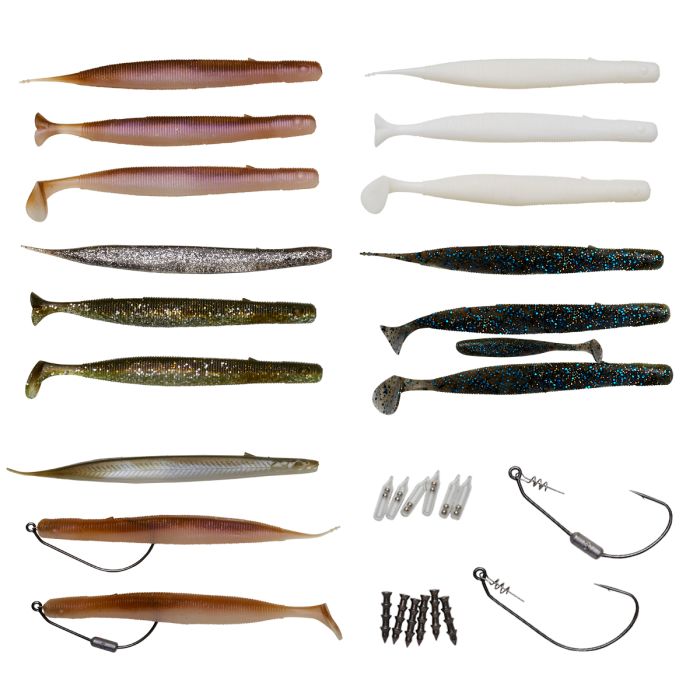 Une gamme de leurres doux à profil mince et longue portée de lancer avec une gravité spécifique élevée. Tous les leurres ont une fente à crécelle dans le corps principal en plus d’une fente à poids dans la queue pour ajouter encore plus de distance à votre lancer si nécessaire.