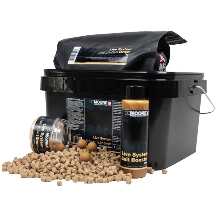 Vous apportant tout ce dont vous avez besoin pour une session de pêche au coup réussie, le Kit de Session Live System de CC Moore vous donne 1kg de Bouillettes Shelf Life Live System 15mm, 20 pop ups air ball Live System 15mm, 100ml de Trempette d’Appât Live System, et 2kg de pellets Live System 6mm, tous fournis dans un Seau à Appâts CCM exclusif, qui continuera d’être une partie utile de votre pêche longtemps après que vous ayez utilisé tout le Kit de Session Live System pour attraper votre nouvelle carpe record, ou attirer certains de vos espèces de coup préférés à votre hameçon.