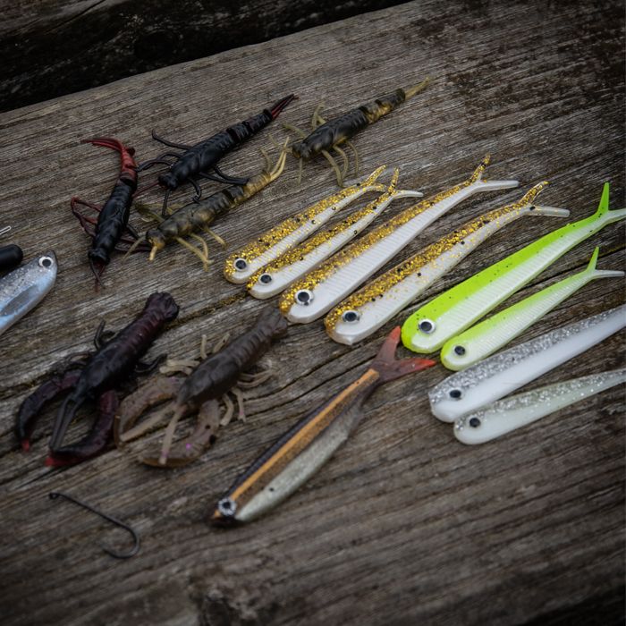 Le kit paquet Drop Shot Pro de Savage Gear contient tout ce dont vous avez besoin pour commencer à utiliser cette technique, y compris deux leurres à queue véritable, quatre leurres à vairon de 6 cm et quatre de 8 cm, quatre leurres 3D à éphémères (qui fonctionnent bien à la fin du printemps, lorsque les éphémères sont naturellement les plus nombreux), deux leurres 3D à écrevisses réactives, trois hameçons drop shot de taille standard, un petit cylindre de poids drop shot de 5 g et deux cylindres de poids drop shot moyens de 7 g.