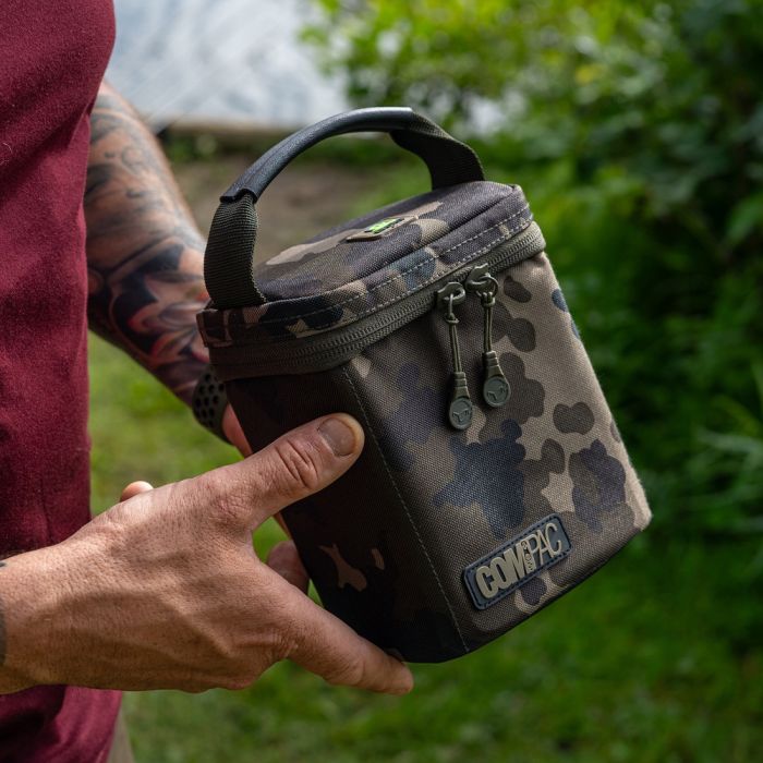 Le Goo peut être incroyablement efficace, surtout lorsque vous jouez avec différentes combinaisons de couleurs et de saveurs, et le Compac Goo Bag est la solution de stockage idéale. Le sac Goo Dark Kamo de Korda est doté d’un insert amovible conçu pour maintenir toutes vos bouteilles de Goo bien en place et éviter de les renverser ou de les endommager.