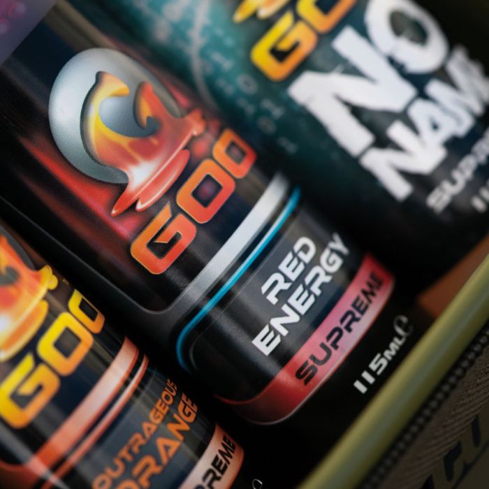 Kiana Carp's Goo est un liquide de trempage, un glug et un additif pour spod-mix, le tout dans un emballage compact. Le nuage d'attraction créé autour dans les zones dégage une réponse alimentaire des carpes instante, étant l'un des attributs qui rend le Goo si révolutionnaire, le goo est simplement incroyable. Mais ce n'est absolument pas le seul. Les stimulants alimentaires et les mélanges des combinaisons de saveurs contenues dans le mystérieux liquide ont été soigneusement mis au point pour stimuler une réaction alimentaire des carpes, où qu'elles se trouvent dans les sites d'eau.