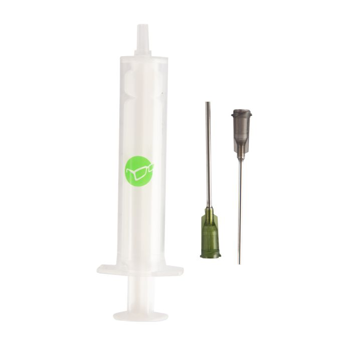 Also, as part of the system comes a Korda branded syringe for injecting liquids like Goo into your bags and a Korda green bait-scoop for loading them up. Both fit perfectly into the trays provided.