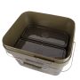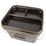 1 x large tray which fits perfectly within the confines of the bucket. This tray is ideal for mixing your bag mix. It’s made from hardened plastic, so it’s strong, durable and easy to clean. Slotted neatly inside this tray are 2 x smaller moulded plastic trays, perfect for storing your needles, PVA bags, scissors, bait-floss and PVA tape so they are easily located when you need them.