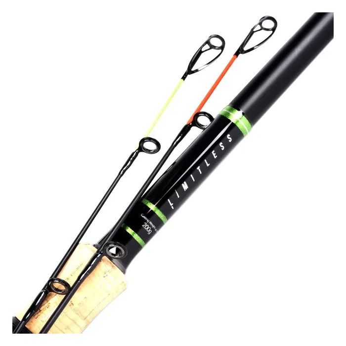 Conçue pour lancer des feeders lourds sur de longues distances, où la précision et la puissance permettent d'obtenir des performances optimales. Fabriquée avec des anneaux anti-frap qui sont parfaits pour les lignes mono et en tresse, une poignée en liège et notre technologie de fibre de carbone K-Flex pour une action progressive. Dotée de deux scions en carbone dimensionnés pour faciliter les lancers avec des shockleaders ou des lignes de forts diamètres, cette canne peut gérer facilement des poids de lancer allant jusqu'à 200g. Capacité de ligne 6lb-15lb. Construction en trois brins. Conçue pour dompter les gros poissons à grande distance