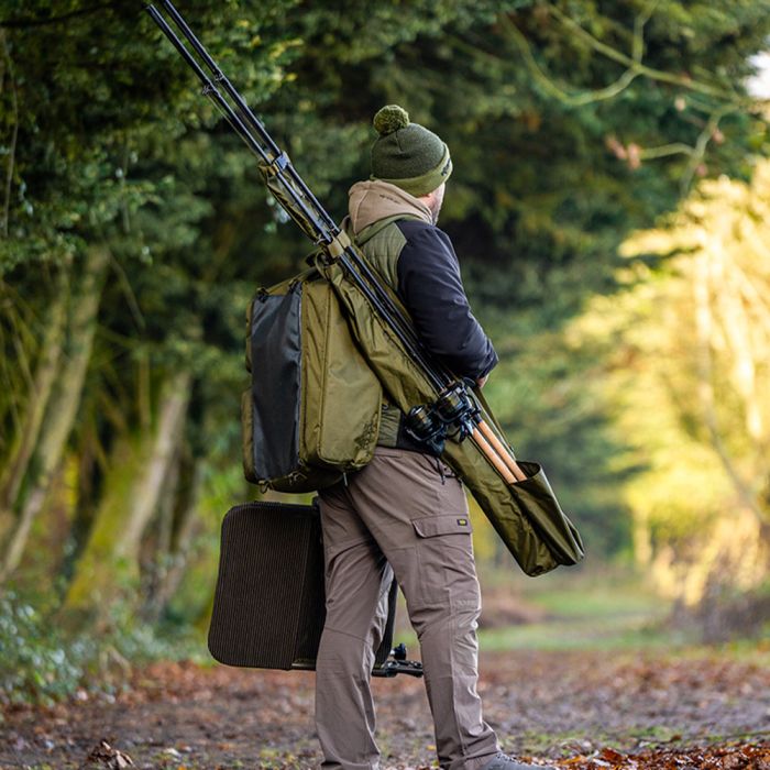 L'optimisation du poids et de l'espace est un élément important pour un pêcheur de spécimens moderne et c'est pour cette raison que nous avons actualisé notre kit d'itinérance roving. Ce kit comprend une chaise de pêche fabriquée dans notre matériau Supa Lite Stretch, un sac à dos compact et un fourreau à 2 cannes fin. La chaise et le sac à dos peuvent être transportés en une seule unité, grâce à notre conception sur mesure qui relie les deux. C'est le meilleur moyen de rester mobile, sans sacrifier la qualité ou la fonctionnalité. Dimensions : Chaise HWD Sac à dos HWD Fourreau HWD