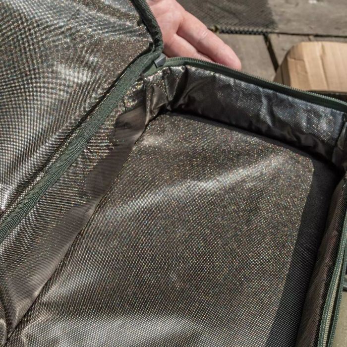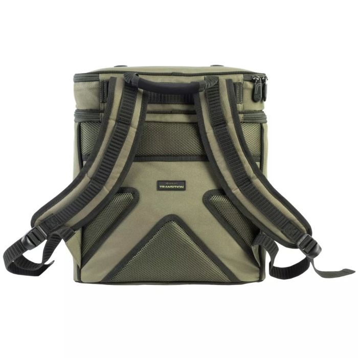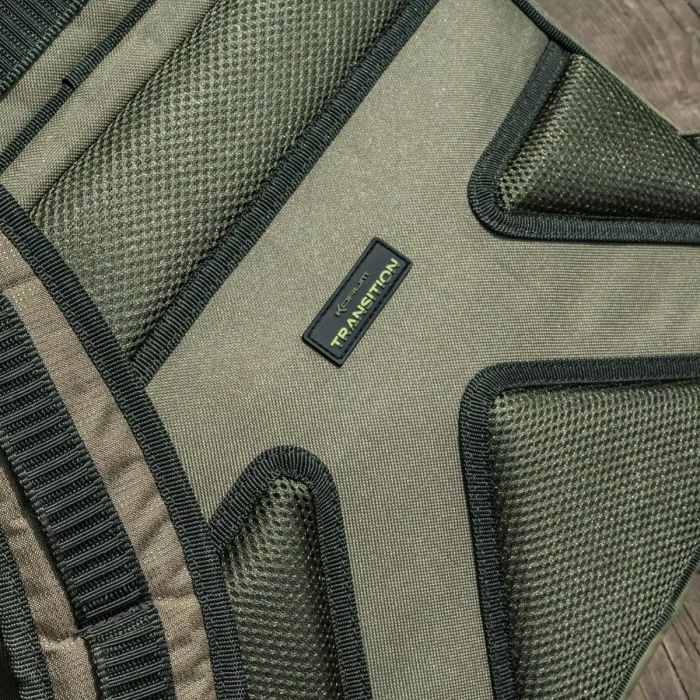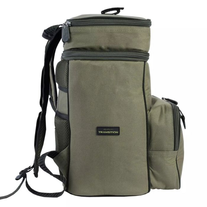 Unique combination of materials makes Korum's luggage lighter; Tougher and more waterproof than ever; Compatible with ITM and Transition tackle boxes and pouches; Large front pocket; Two D loop attachments and two carabiners; Separate cool pouch area in the top; Padded shoulder straps; Dimensions: 35 x 25 x 38