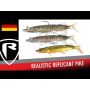 Longueur : 20cm / 8inch. Trois options de couleur. Forme de corps de proie hyper réaliste. Motifs de couleurs hyper réalistes. Hameçons haut de gamme. Système de rotation d’hameçon de ventre pour aider à maintenir les accrocs d’hameçons.