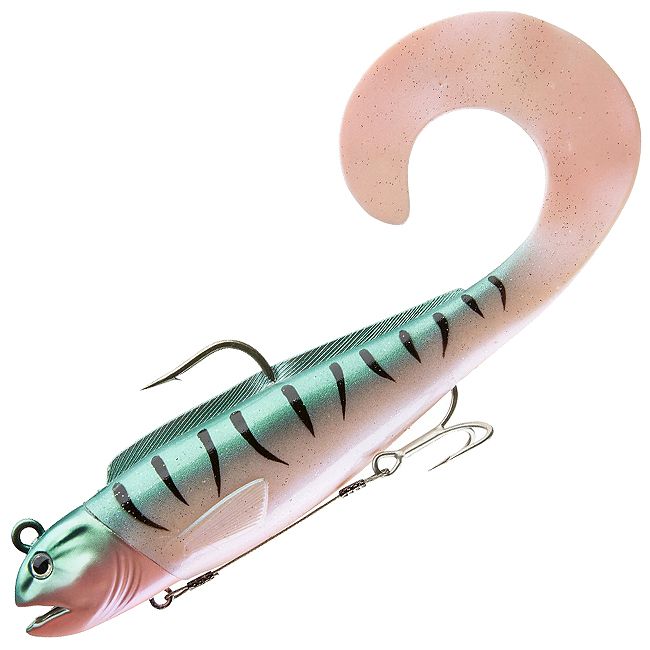 Avec le D-Wolf, vous avez tout ce qu'il vous faut pour pêcher les gros cabillauds en Norvège. Les recherches ont montré que les loups de mer étaient l'une des proies favorites des flétans. Le D-Wolf qui possède une longue queue en forme de faucille est très attractif, surtout lorsqu'il est récupéré lentement. Il a séduit de nombreux flétans et des cabillauds lors de notre phase test. Il peut s'utiliser avec un moulinet spinning et avec une canne jigging robuste - Leurre idéal lorsqu'il s'agit de pêcher en dérive à faible ou moyenne vitesse. Tous les composants qui entrent dans leur fabrication ont été minutieusement sélectionnés pour leur grande qualité afin de pouvoir résister aux plus fortes contraintes rencontrées lors du combat.