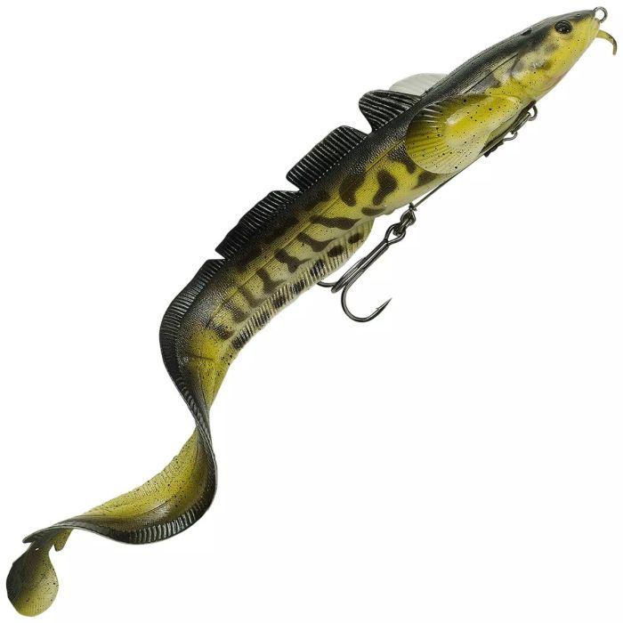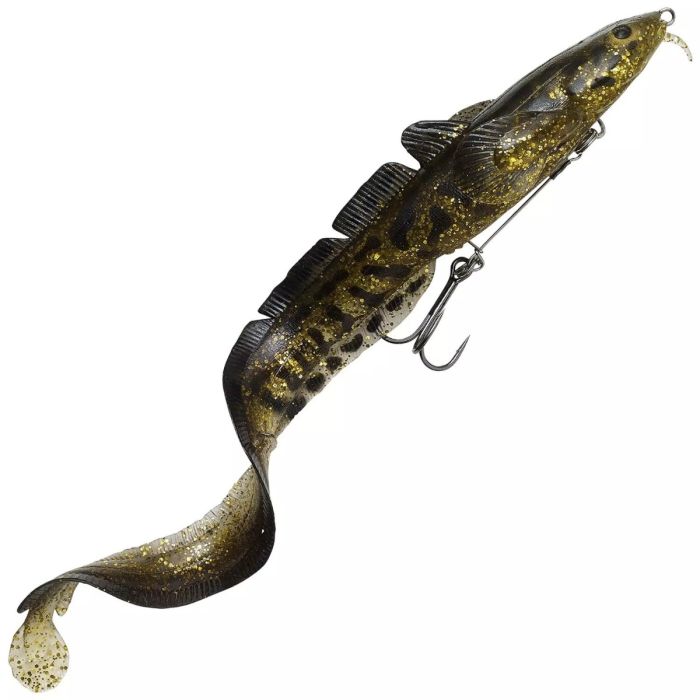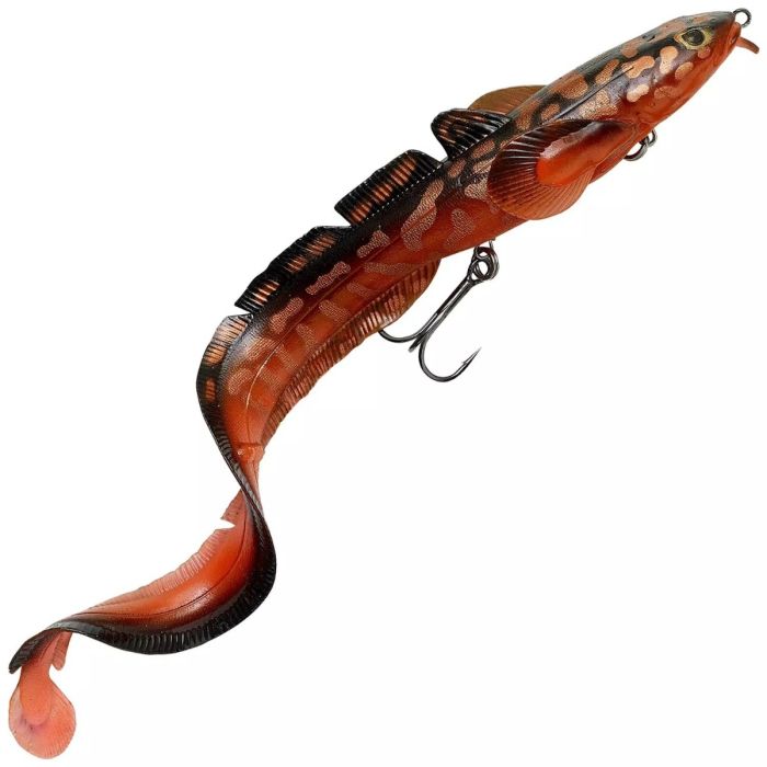 Une super imitation réaliste de lotte, basée sur une numérisation 3D d'une vraie lotte pour la pêche peu profonde. Incroyable action de nage, qui peut être utilisée très lentement et parfaitement équilibrée, qui permet aux leurres de nager avec un battement de queue lent. Le harnais intérieur a un hochet en acier intégré qui émet un son puissant lorsque le leurre est contracté. La queue a un hochet en verre. Hameçon Y-trebles ultra-tranchant monté sur un stinger en acier inoxydable.