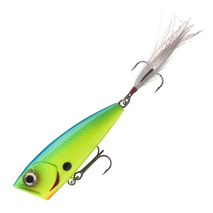 Le Steez Popper s'anime facilement en walking-the-dog. Grâce à sa forme spéciale, ce leurre atterrit dans l'eau silencieusement et n'effraie donc pas les poissons méfiants qui se cachent proche de la surface. Son ""Pop"" special attire les carnassiers même à grande distance. Grâce à ses prises énormes, le Steez Popper est déjà une légende au Japon.