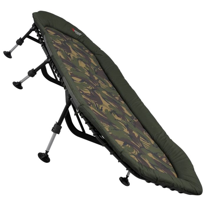 Esthétiquement, le Straight 6 est doté d’un camouflage DPM stylé qui complétera un biwy Advanta DPM parfaitement. Le Discovery CCX Straight 6 utilise aussi une construction légère, le cadre aluminium offre un poids faible et une puissance géniale, le système de support à double pli permet à un sac de couchage d’être plié à l’intérieur du bedchair lors du transport et résulte en le Straight 6 étant le bedchair parfait pour le pêcheur itinérant.